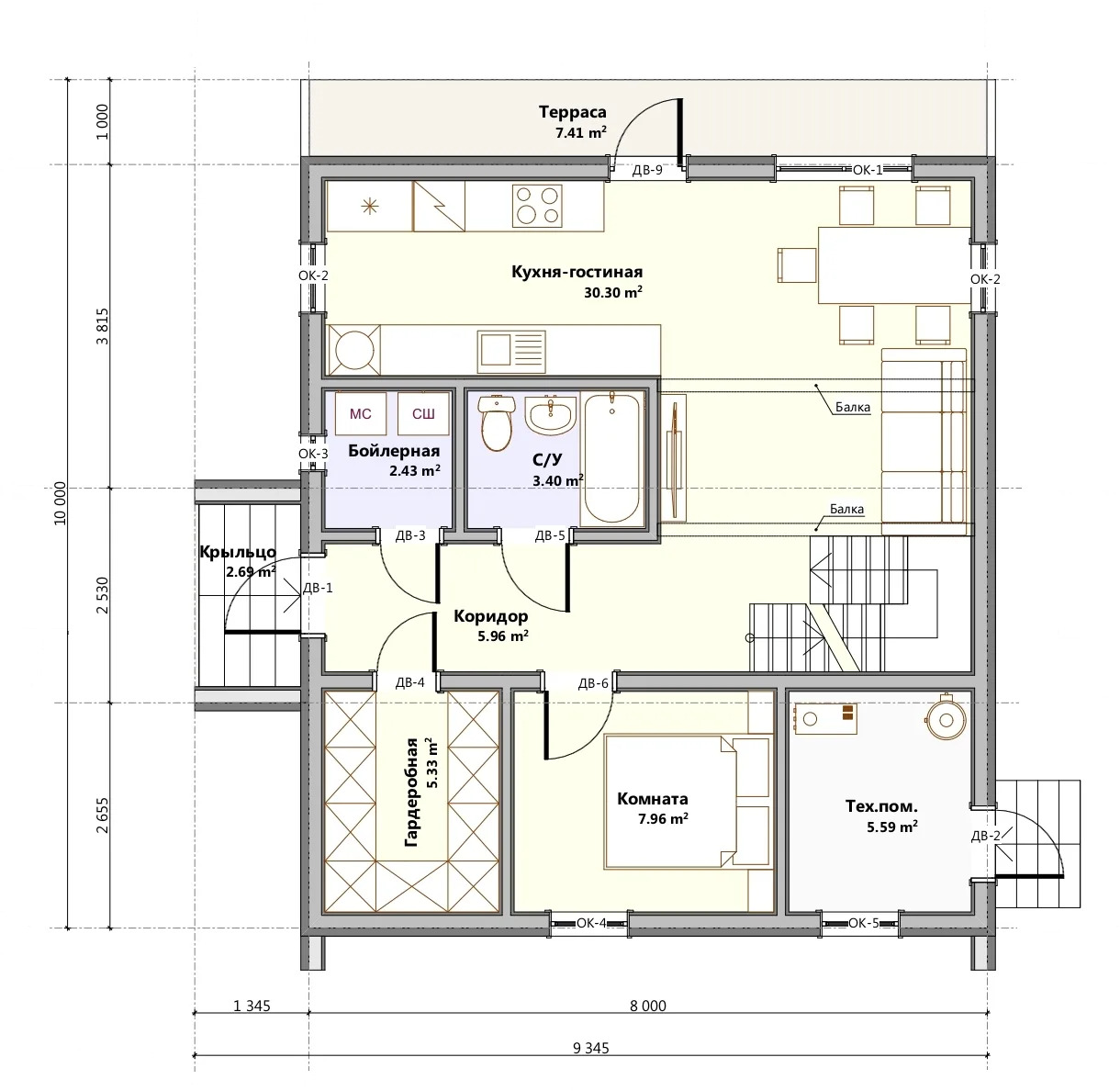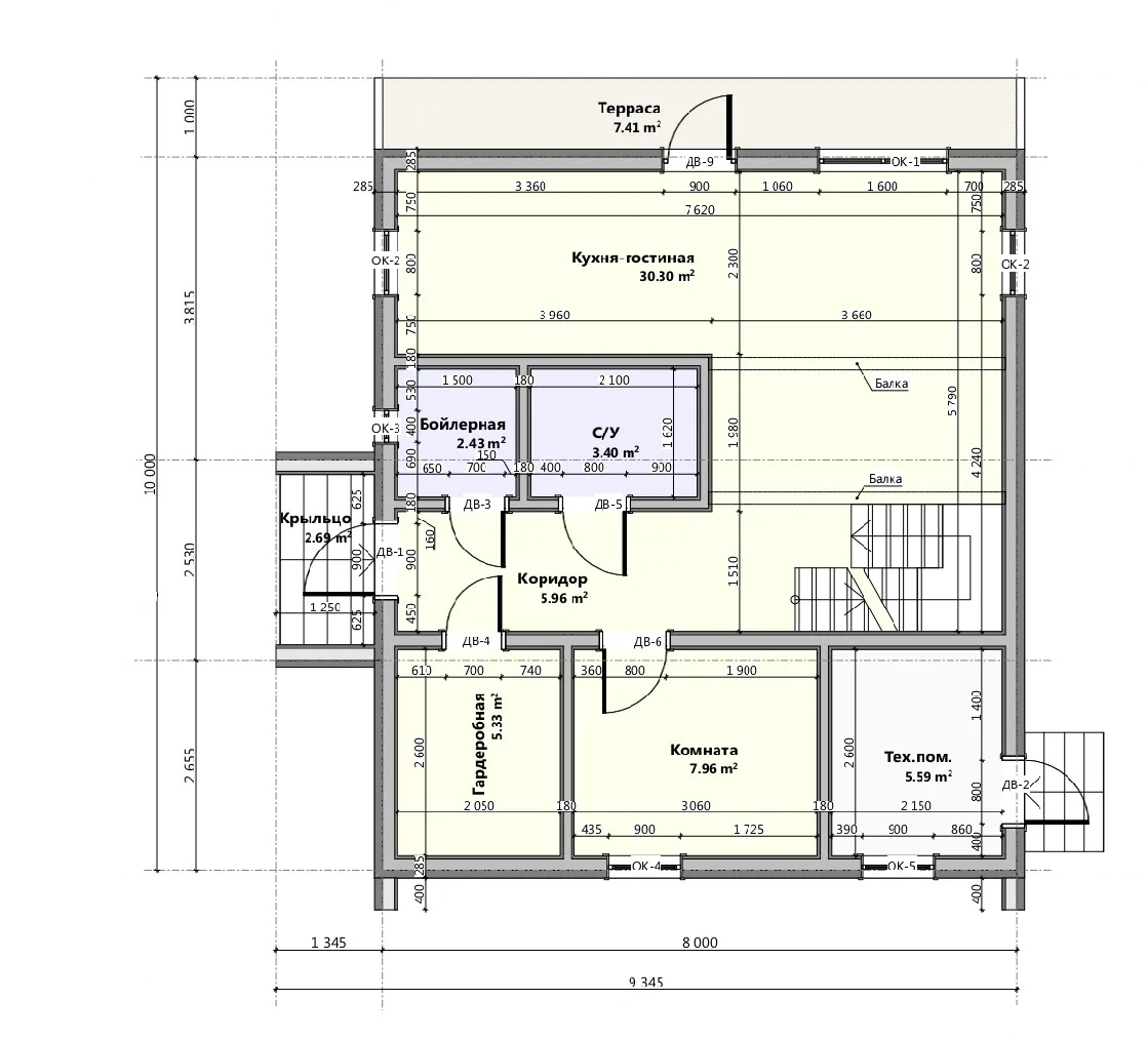 Площадь 1-го этажа: 71,07м2