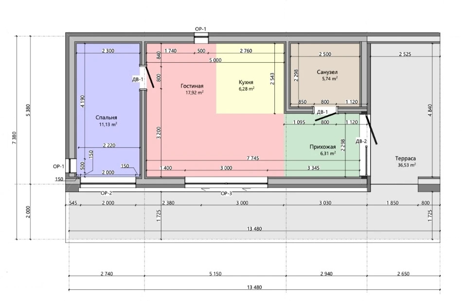 Закрытая терраса 2,525 х 5,4 = 13,64м2
