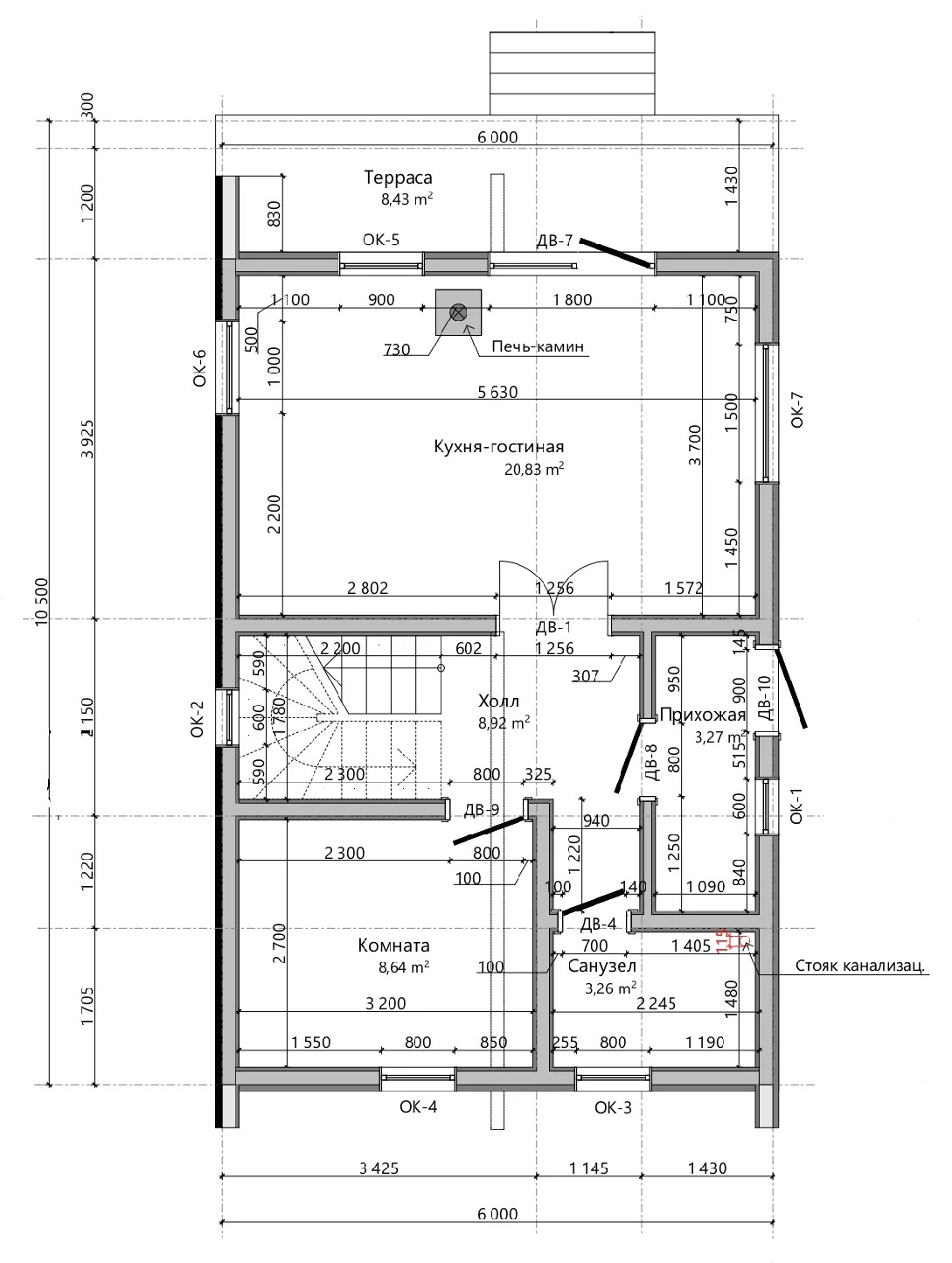 Площадь 1-го этажа: 53,35м2